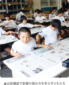 小学校や中学校の学習指導要領に新聞の活用が盛り込まれる中、 読者センターでは児童・生徒に 活字に親しんでもらおうと、毎週水曜日に子ども向け紙面「ぶんぶんジュニア」を作成しています。「小学生わたしの新聞コンクール」や「新聞感想文コンクール」「新聞切り抜き教室」、仕事に役立つ新聞の活用法を紹介する「NIB講座」など独自の催しも手掛けています。